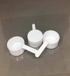 Small, often handheld tools designed for measuring or transferring powders, granules, or liquids. They are commonly used in kitchens, laboratories, and manufacturing for accurate portioning.